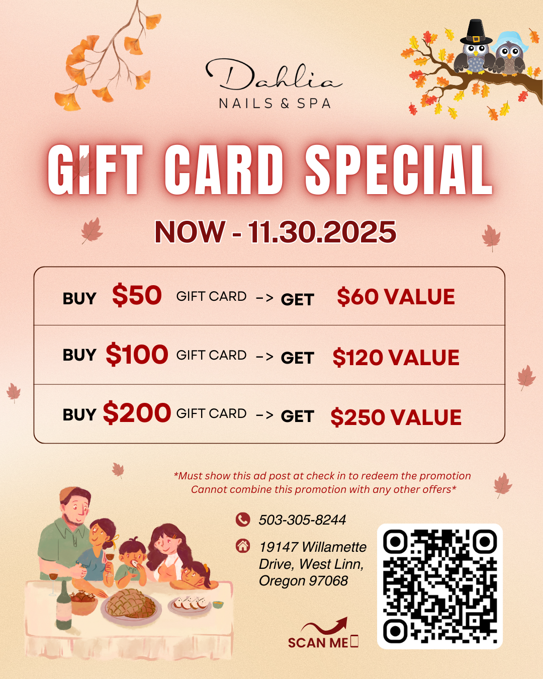 At Dahlia Nails & Spa, your gift cards now come with extra love and extra value: